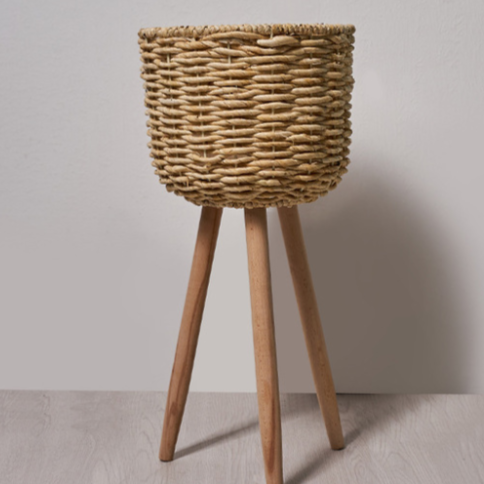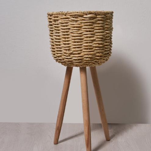 Bodenstehende Blumentopf-Möbel aus Stroh